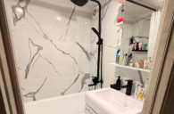 Чистая, теплая, уютная квартира, сдается первый раз. В квартире остается все что на фото( кроме того что помечено красным крестом). В ванной, туалете теплые полы, новая проводка, новые трубы, все было сделано для себя. Удобное расположение дома-детский сад, школа, торговый центр, трамвайные пути все в шаговой доступности. Квартира сдается на длительный срок, ежемесячная оплата 25 000 + коммунальные платежи. Залог 40 000 можно разбить на 4 месяца и 25 000 оплата за последний месяц. Без животных!!!