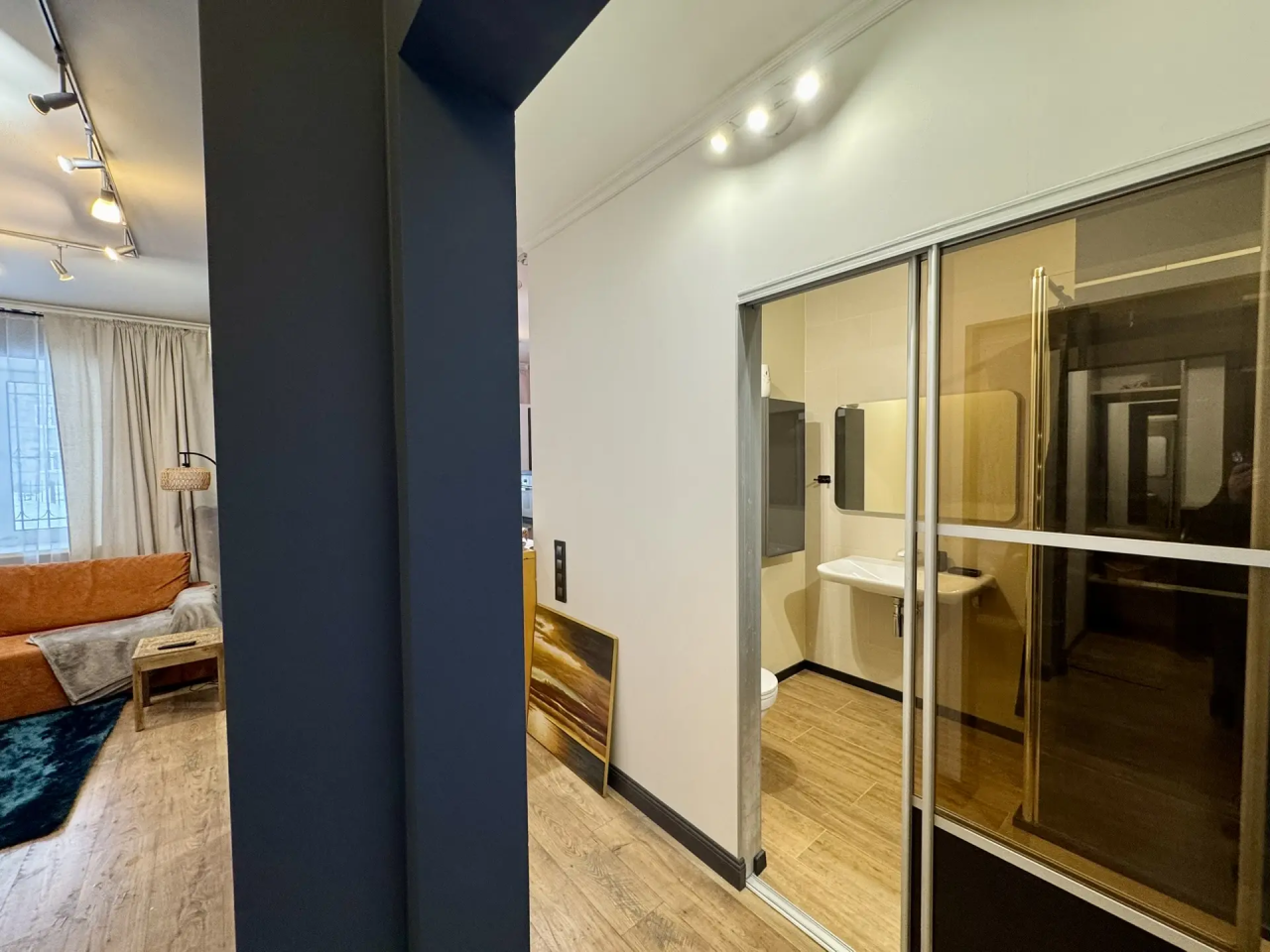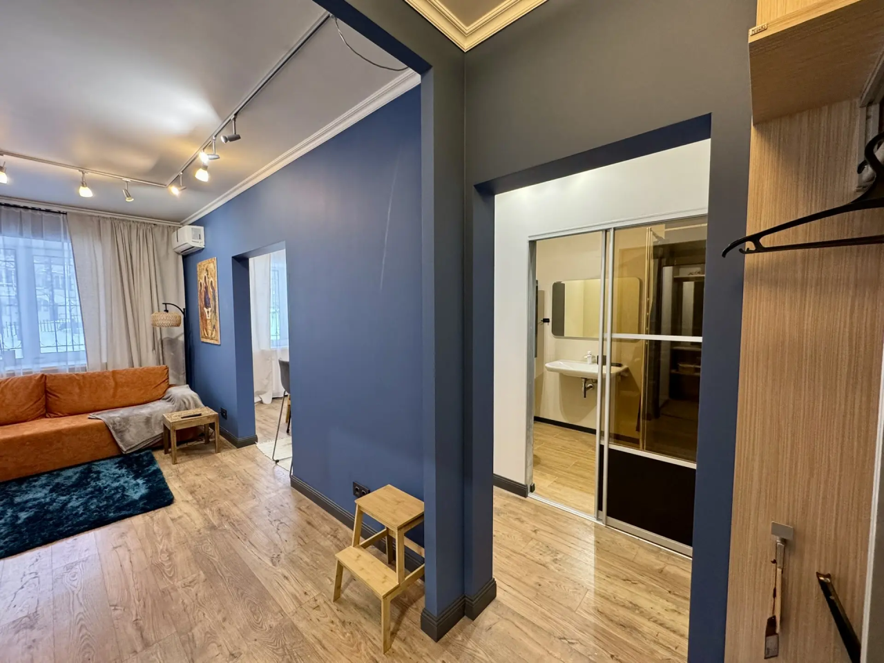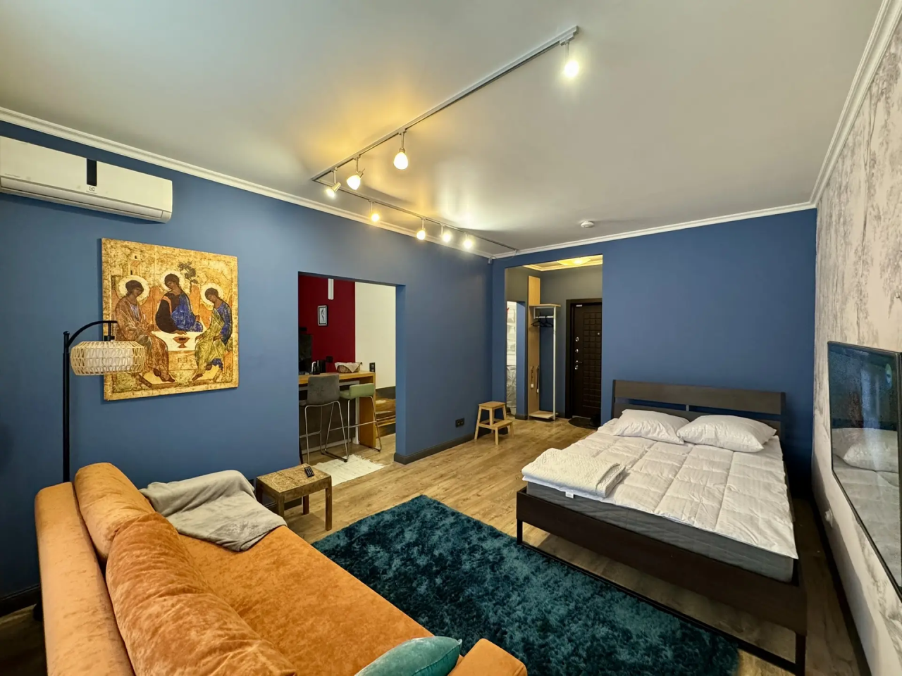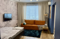 Сдается студия, современный деликатный европейский дизайн. Идеальный вариант для одного человека или пары. Только натуральные качественные дорогие материалы европейских производителей - стены и потолок краска Tikkurila, пол в комнате и кухне паркет Quick Step, в ванной керамогранит Kerama marazzi, душевая кабина Sanswiss, электрика Schneider electric, сантехника Kludi и Keramag, мебель Mr. Doors (прихожая, кровать, хозяйственный уголок, стеллаж и гардеробная комната), кухня-остров Hulsta&НМ с гранитной столешницей и барной стойкой, световые решения Paulmann, текстиль и аксесcуары H&M и Zara Home, вся бытовая техника (газовая стеклянная поверхность Indesit, стиральная машина с сушкой Hotpoint Ariston, холодильник Electrolux, духовой шкаф Bosch совмещенный с микроволновкой, телевизор LG 45" - 100 каналов, кондиционер Electrolux, утюг, чайник, гладильная доска), интернет WiFi. Дом на охраняемой территории с видеонаблюдением, в 30 м от дома подземная охраняемая парковка, рядом вся необходимая инфраструктура - магазины, спорткомплексы. В квартире установлена охранно-пожарная сигнализация. В цену включены коммунальные услуги, интернет и ТВ. Квартира в хорошем состоянии, реновация в 2026 году. Работаем с организациями